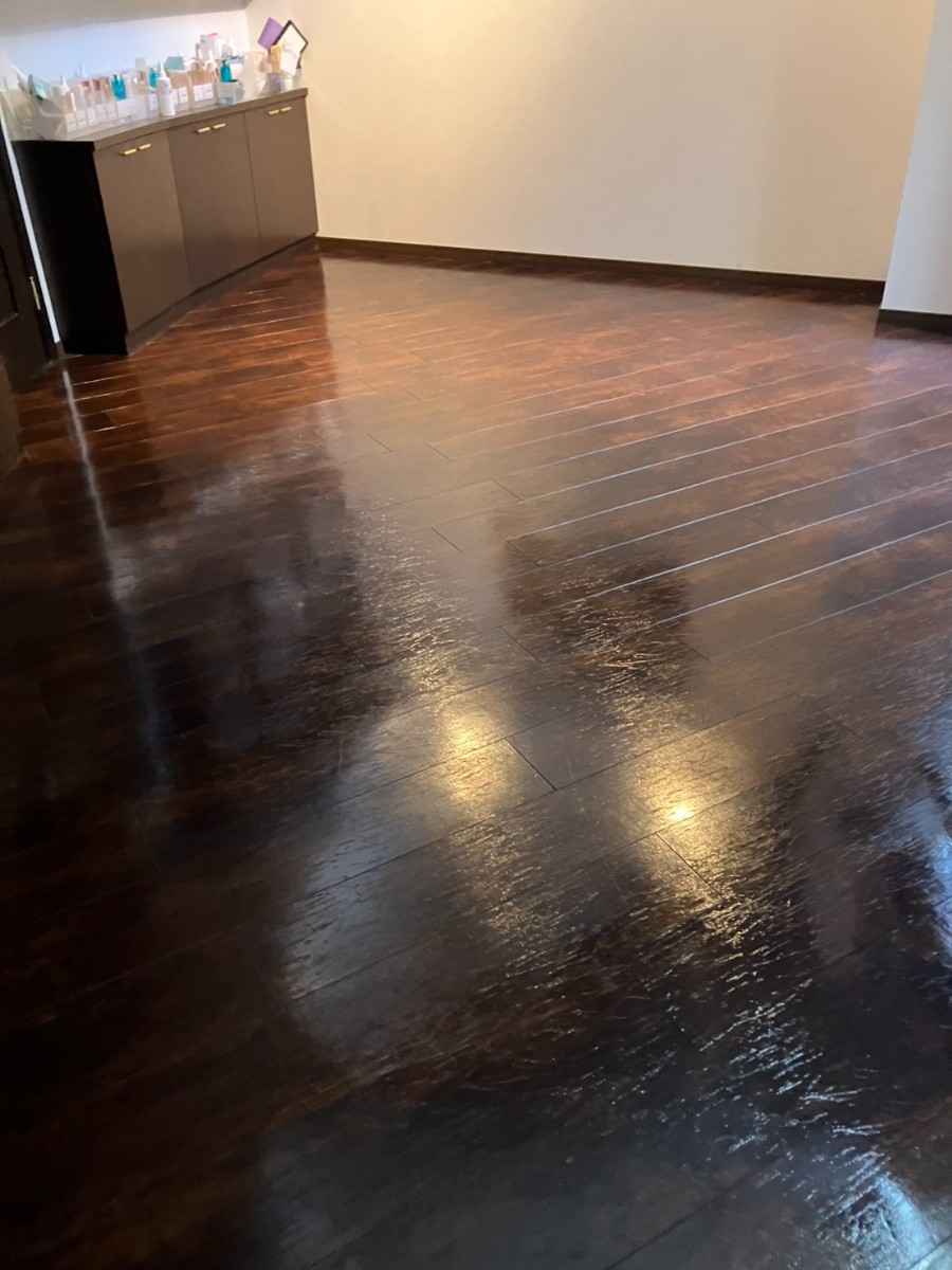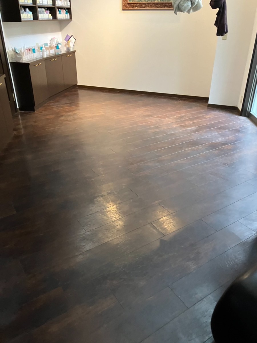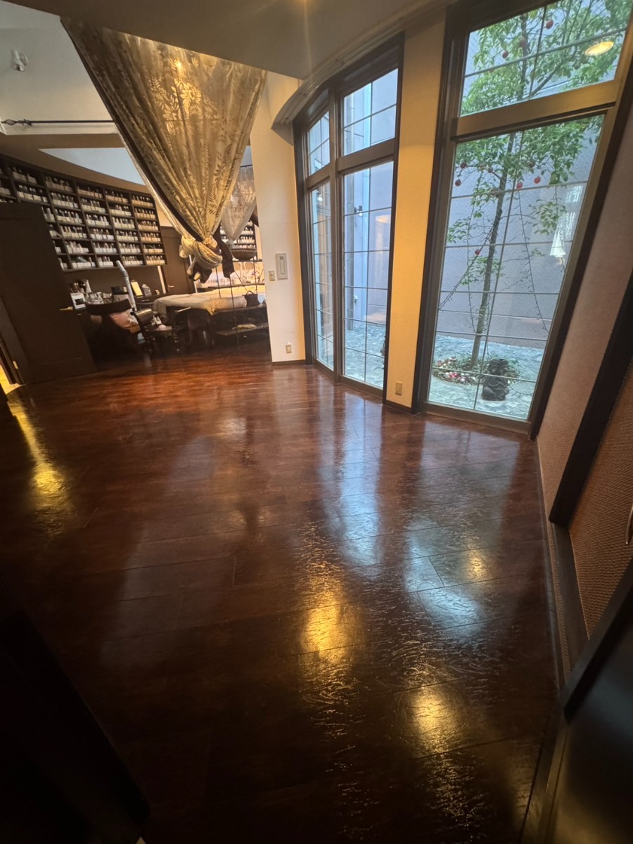 今回はエステサロン様の店舗にて、床フローリングのワックス施工を行いました。